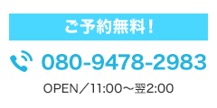 お気軽にお問い合わせくださいOPEN/12:00~24:00受